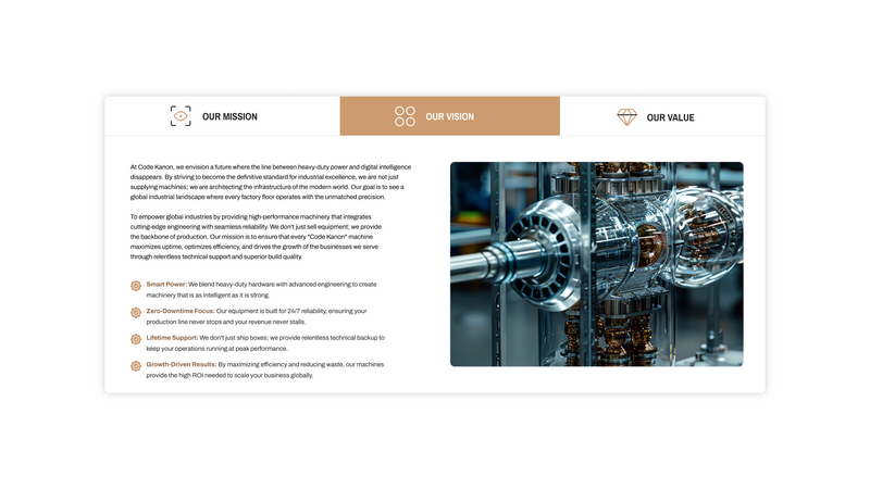 Layout: A smart, space-saving design. It features a horizontal tab menu at the top, paired with a dynamic 2-column layout (Text and Image) below. On mobile devices, it perfectly adapts into a single column with a swipeable, horizontal scrolling tab menu .