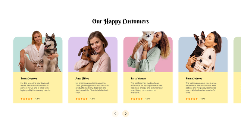 Details: This section uses vibrant, full-sized customer photos to create a highly engaging and authentic testimonial display. It's designed to build strong social proof by allowing visitors to connect with real customers and their positive experiences.