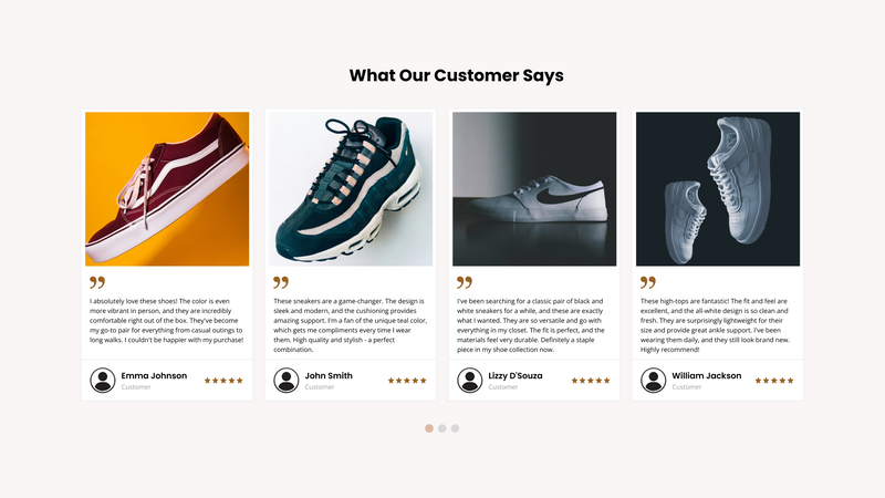 Details: This elegant and minimalist section is designed to showcase customer reviews in a clean, uncluttered slider format. It puts the focus squarely on the content of the review and the authenticity of the customer, providing strong social proof without visual distractions.