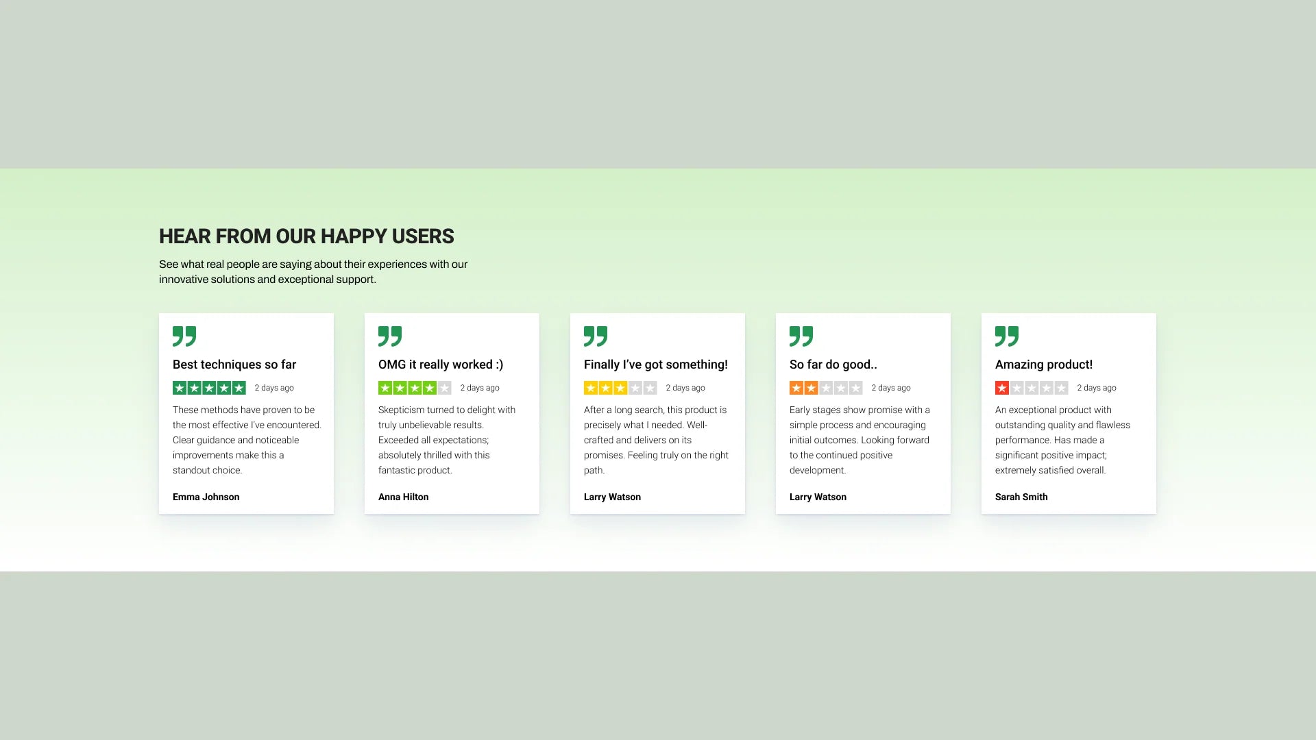 Details: This section allows you to display a series of customer testimonials in a clean, professional layout, inspired by popular review platforms like Trustpilot. It's designed to build trust and...