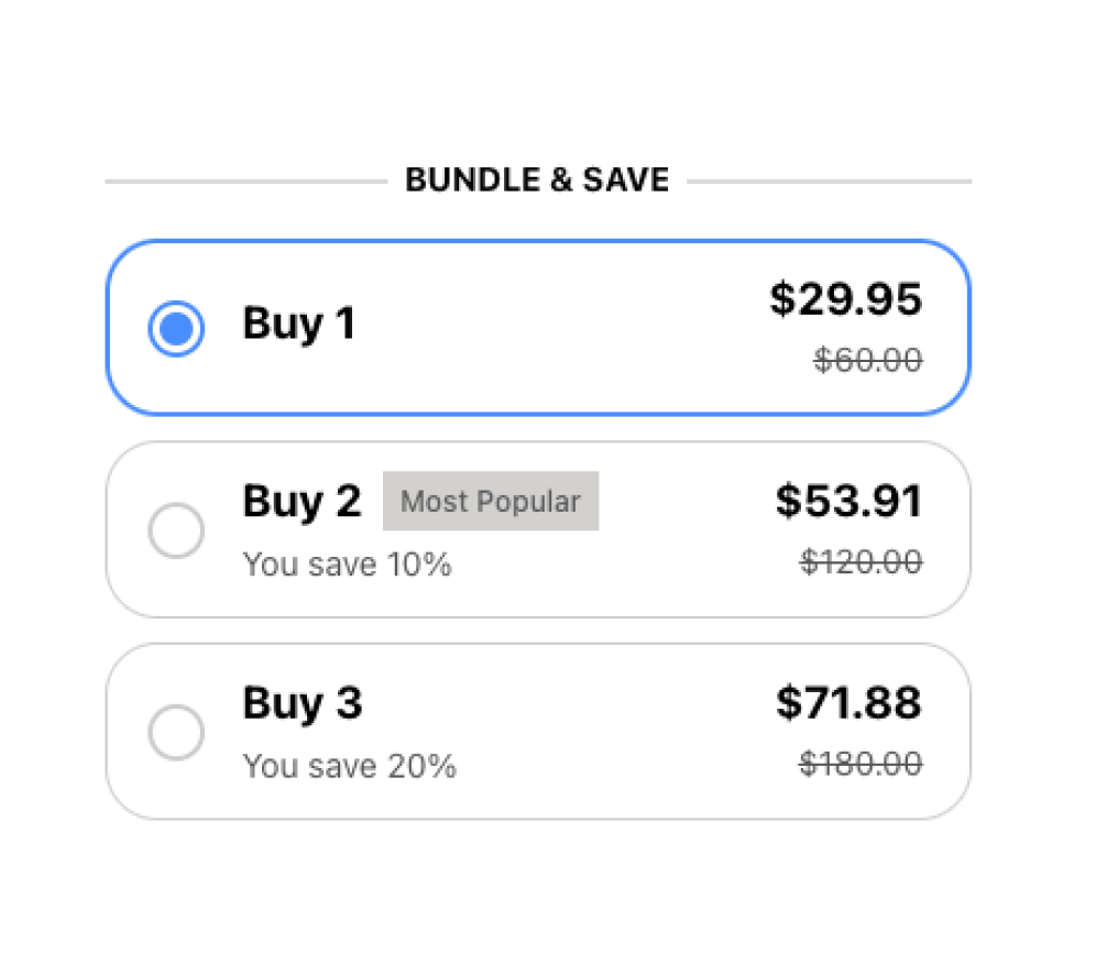 Easily bundle products, apply discounts, and showcase them beautifully on your store.