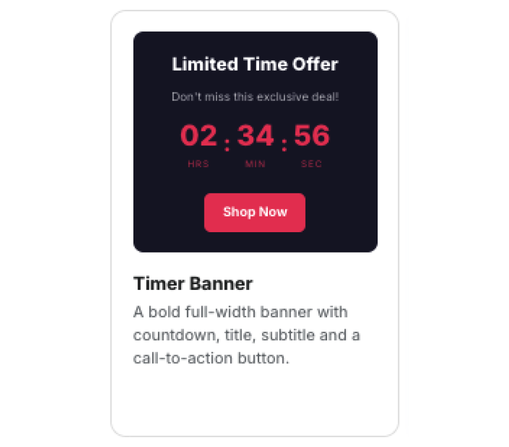 Layout: A simple, modern block that puts your signup form right next to a video. It’s clean, focused, and fits perfectly on any page of your store.