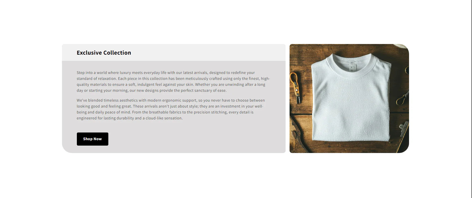 Details: This elegant section is designed to highlight your brand's key benefits and value propositions. It uses a clean, grid-based layout with simple iconography to clearly communicate why custom...